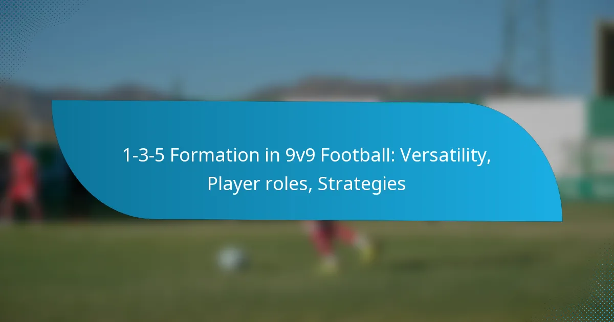 The 1-3-5 formation in 9v9 football emphasizes versatility and teamwork, assigning distinct roles to each player. This structure typically includes one goalkeeper, three defenders, five midfielders, and no traditional forwards, allowing for fluid movement and dynamic play.