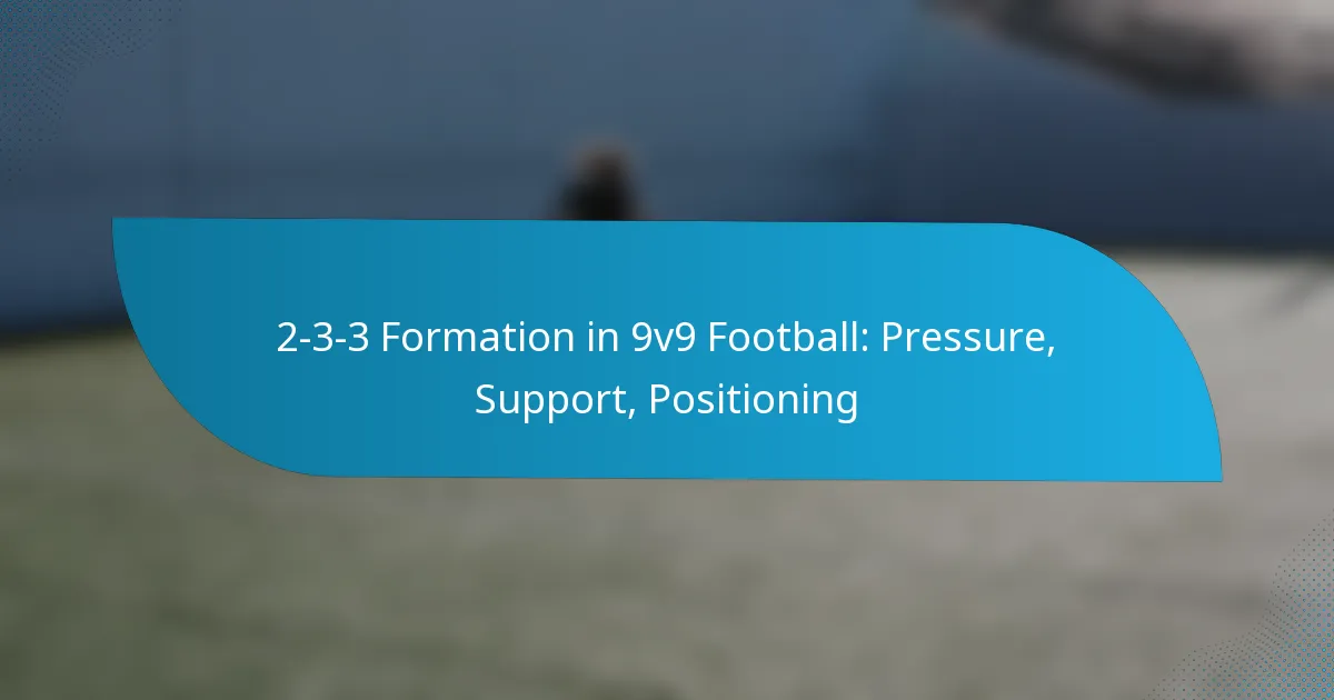 The 2-3-3 formation in 9v9 football is a tactical setup that features two defenders, three midfielders, and three forwards, striking a balance between offensive play and midfield control. This formation emphasizes coordinated pressure on the ball carrier and the importance of providing immediate support to regain possession. Effective teamwork and strategic positioning are crucial, allowing players to maintain fluidity and cohesion while executing both offensive and defensive strategies.