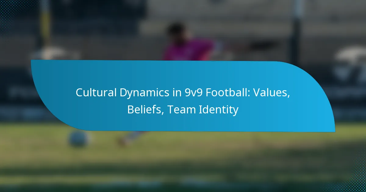Cultural values in 9v9 football encompass the beliefs and principles that shape team dynamics, influence community involvement, and foster a sense of identity among players. These values promote teamwork, respect, and inclusivity, which are essential for creating a positive sporting environment.
