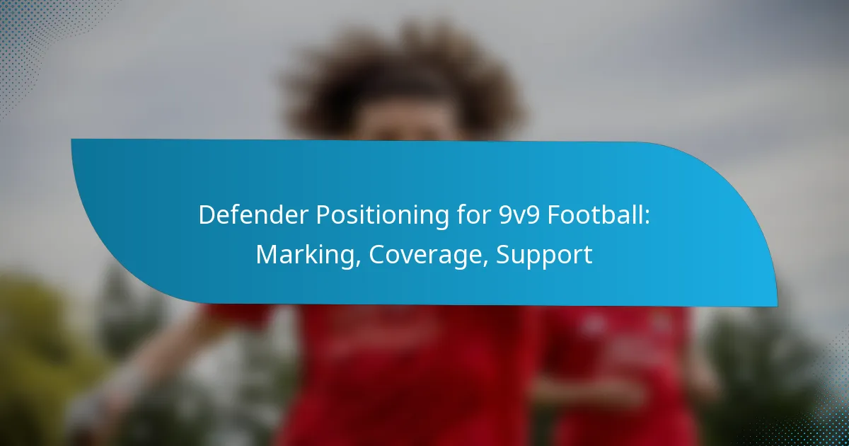 Defender positioning in 9v9 football is crucial for maintaining a robust defensive structure while effectively marking opponents and offering support. By employing a blend of man-to-man and zonal marking techniques, defenders can adapt to game situations and the movements of opposing players, ensuring a cohesive defensive shape that minimizes scoring opportunities for the opposition.