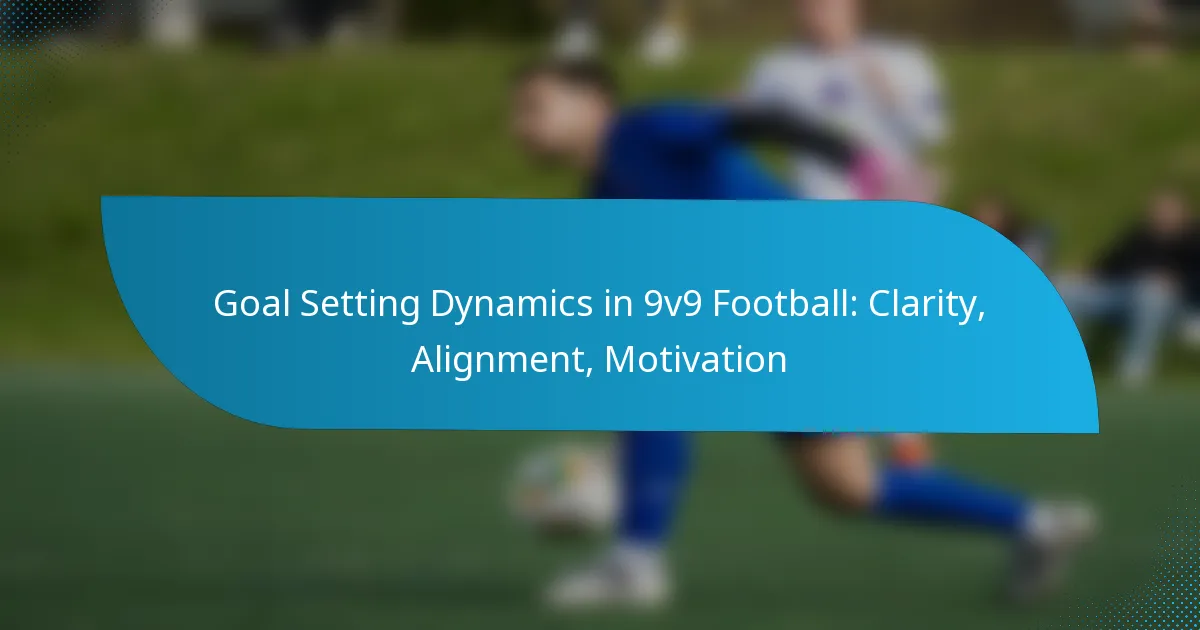 Goal setting in 9v9 football involves defining clear objectives that enhance team performance and individual player development. Key components include clarity, alignment, and motivation, which together create a structured approach to achieving success on the field.